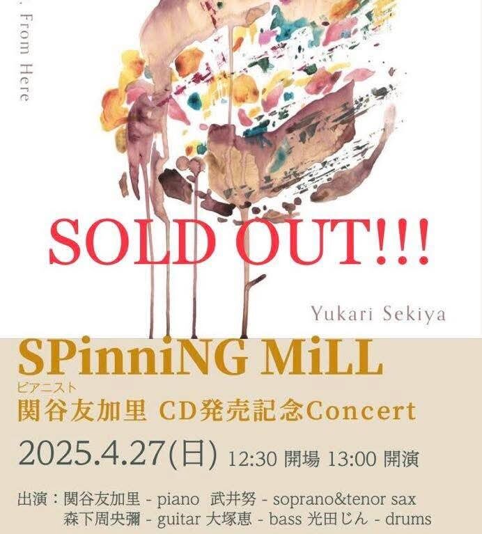 【堺市堺区】2025年4月27日(日)にSPinnig MiLL(スピニング・ミル)で開催される関谷友加里CD発売記念コンサートの予約が始まりました。