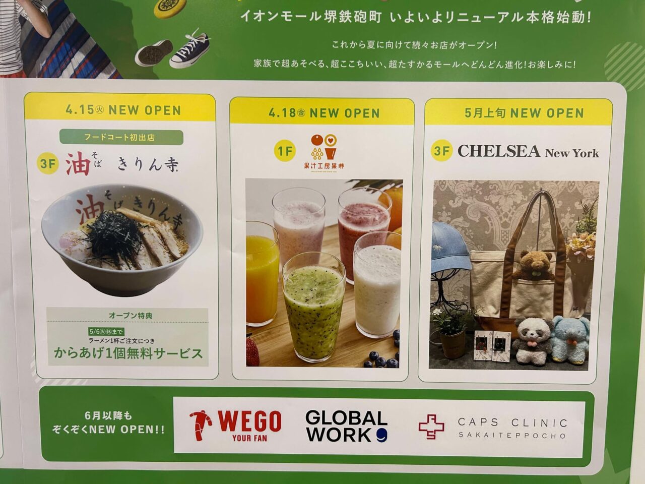 イオンモール堺鉄砲町では、続々とリニューアルしていくようです。こちらも要チェックですね。