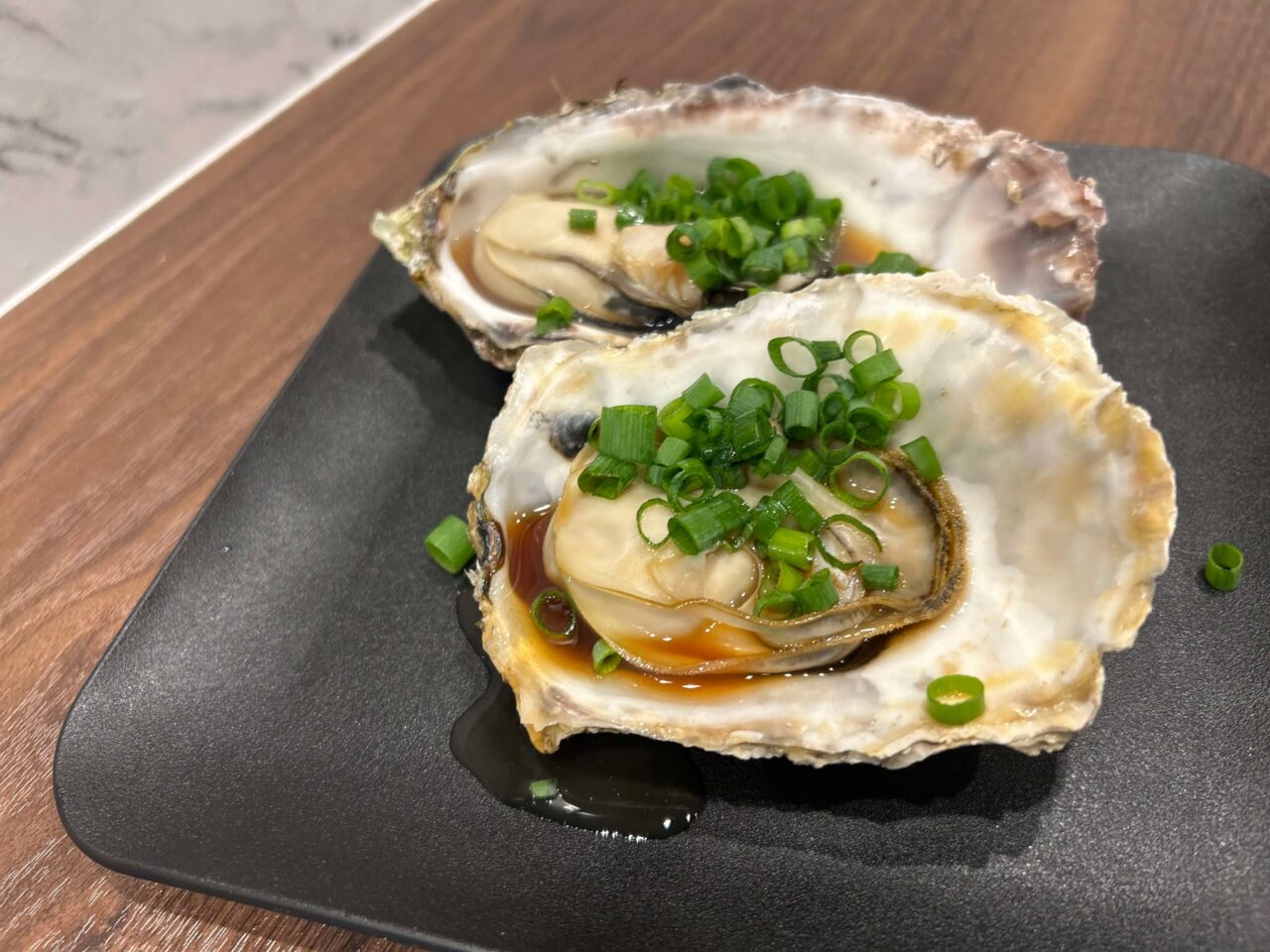2日だけのイベントでも、メニューはしっかりと準備されています。特におすすめが蒸し牡蠣とお造り3種で、イベント当日の朝に能登から届いた新鮮な魚と牡蠣を使っています。