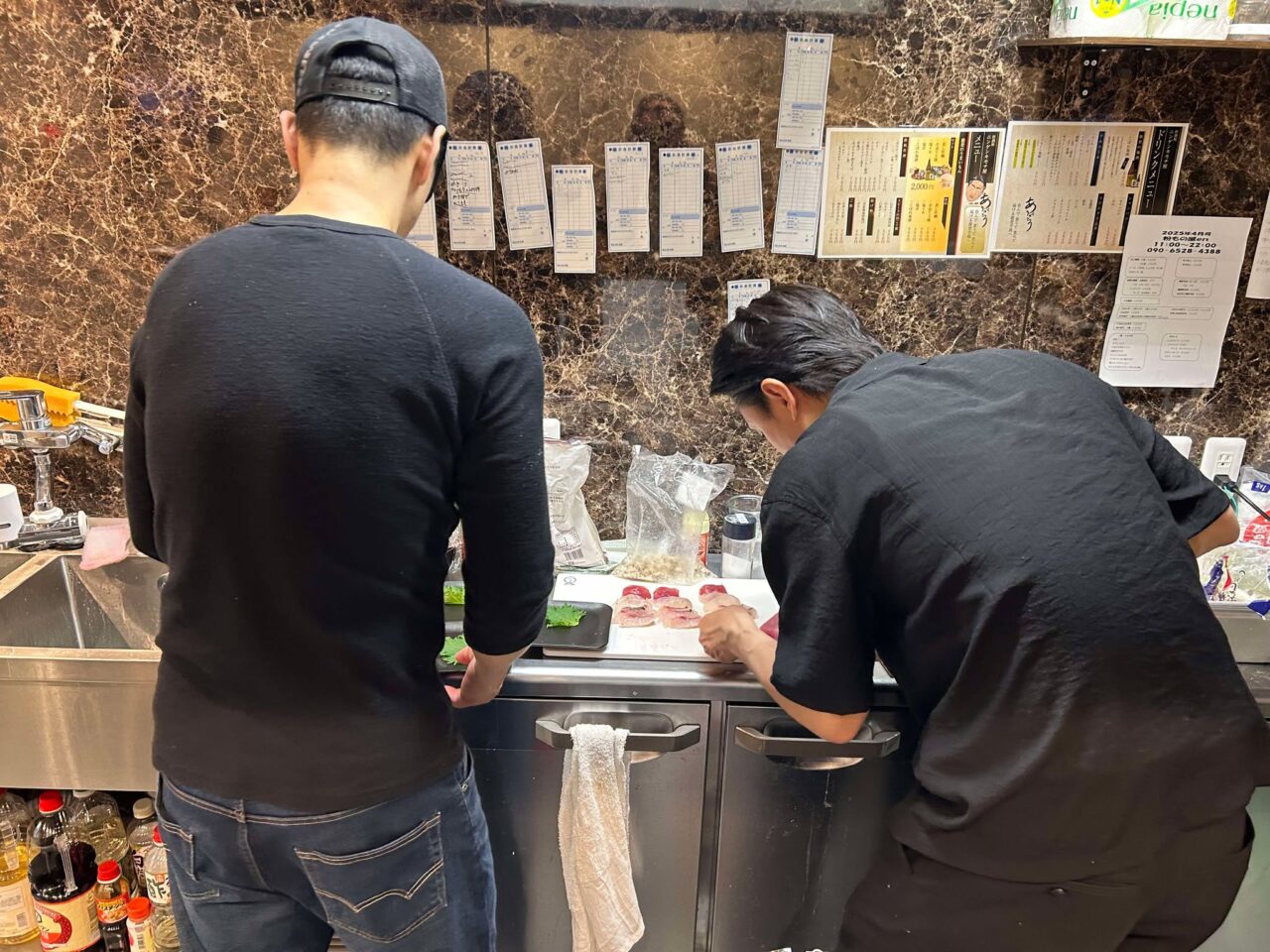 このイベントの主催は災害支援団体「残響」です。代表の遊侠さんは歌手活動や俳優をされています。このイベントに賛同してくださった粉もん屋enさんの調理機材をフル活用して能登のうまいもんを提供します。もちろん、災害支援金の募金箱も設置。