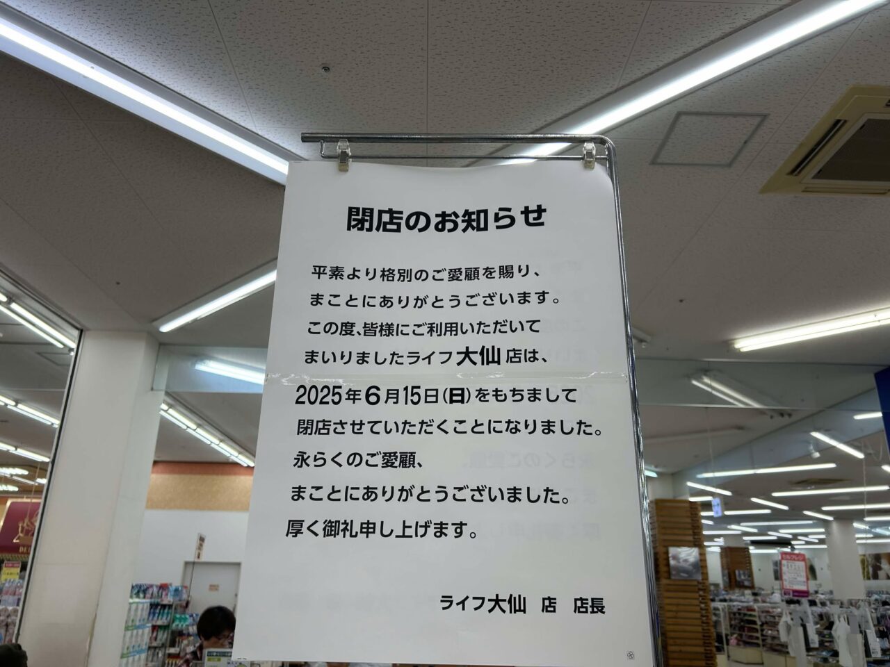 2025年6月15日(日)18時に閉店するライフ大仙店はこちら↓