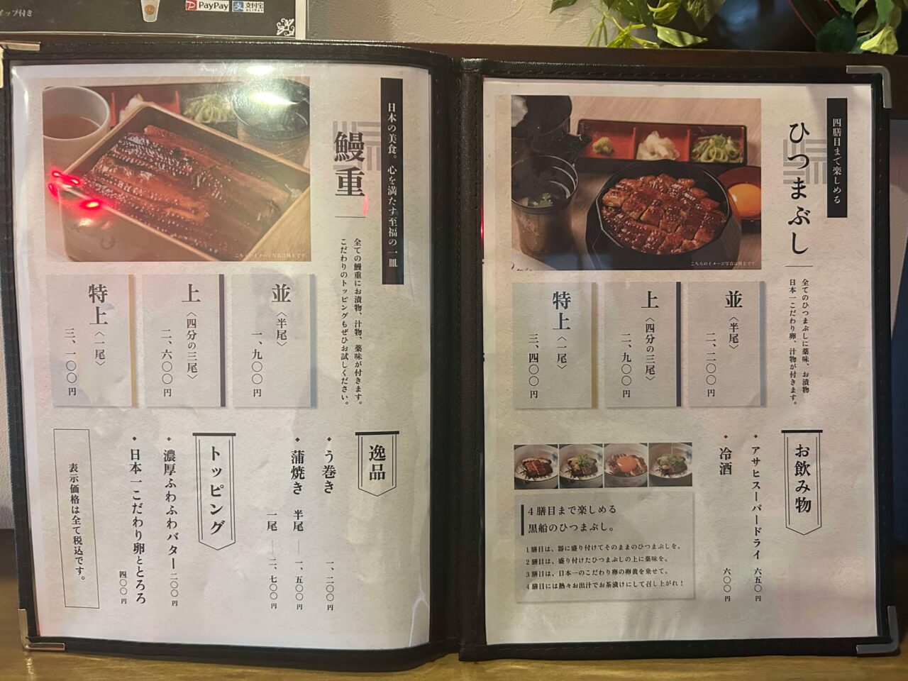 やはり、看板メニューの鰻重は存在感があります。並、上、特上の3種類から選べます。そしてひつまぶし。こちらも3種類からお好みに合わせて選択できます。逸品としてう巻きや蒲焼きもあります。