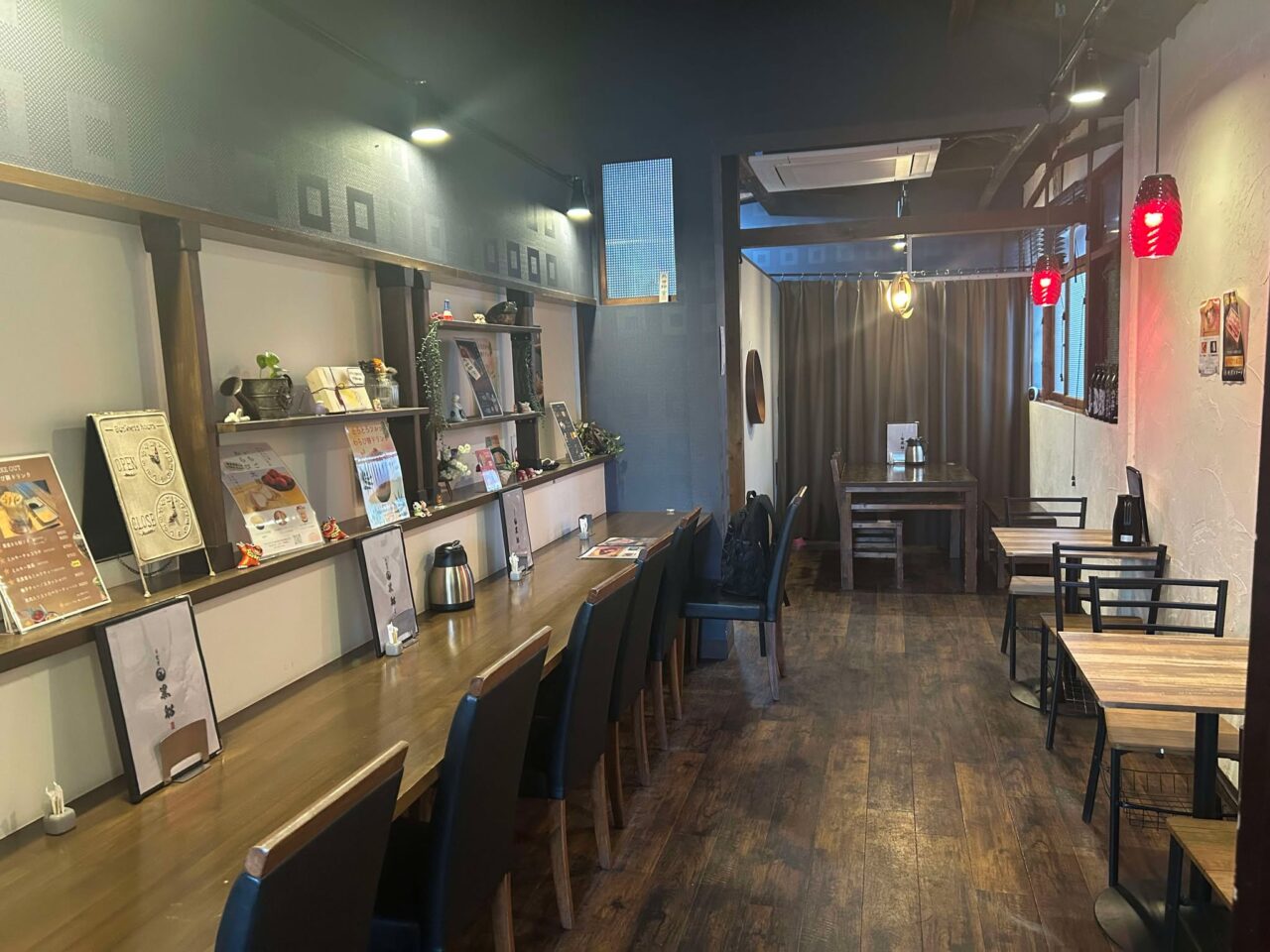 店内は白を基調とした木目調のフローリングの落ち着いた雰囲気になっており、カウンターと2人席が用意されています。