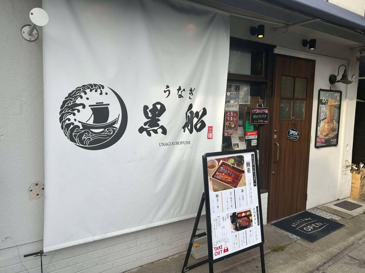 南海バス大仙中町停留所から歩いて約2分の場所にあります『うなぎ黒船 堺御陵通店』で期間限定の商品があるとのことで、早速訪問しました。大きな白旗に黒の文字が目印です。