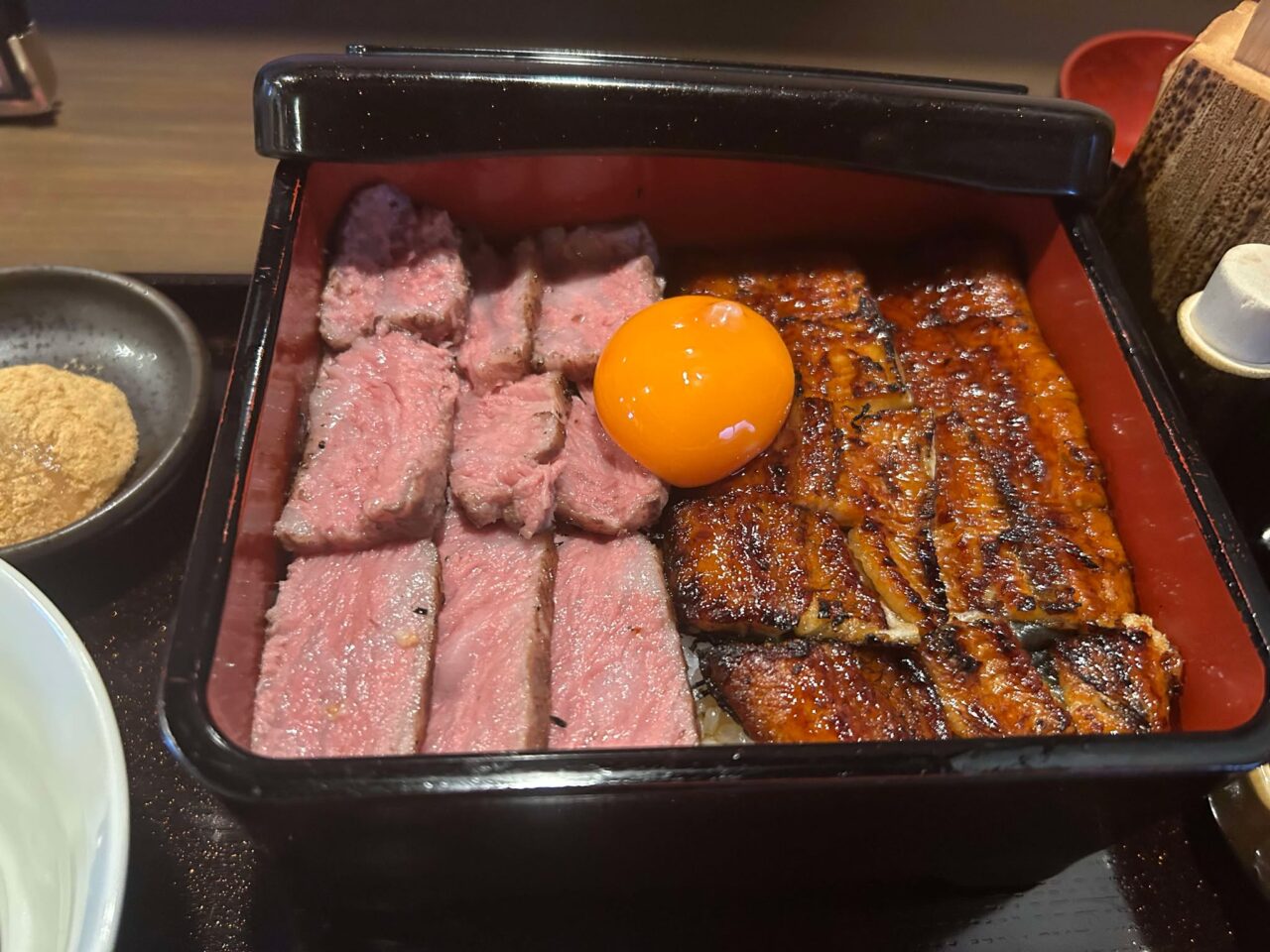 鰻も和牛も食べたい!そんな夢を叶えるハーフ&ハーフの逸品です。では、いただきたいと思います。
