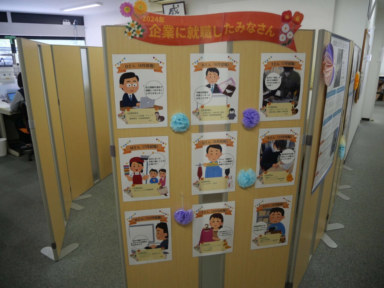 さらには、パソコンの基本動作や文章力の訓練を兼ねた事務作業もあり、訓練生の希望業種で就職できるように支援者がしっかりと指導してくれます。