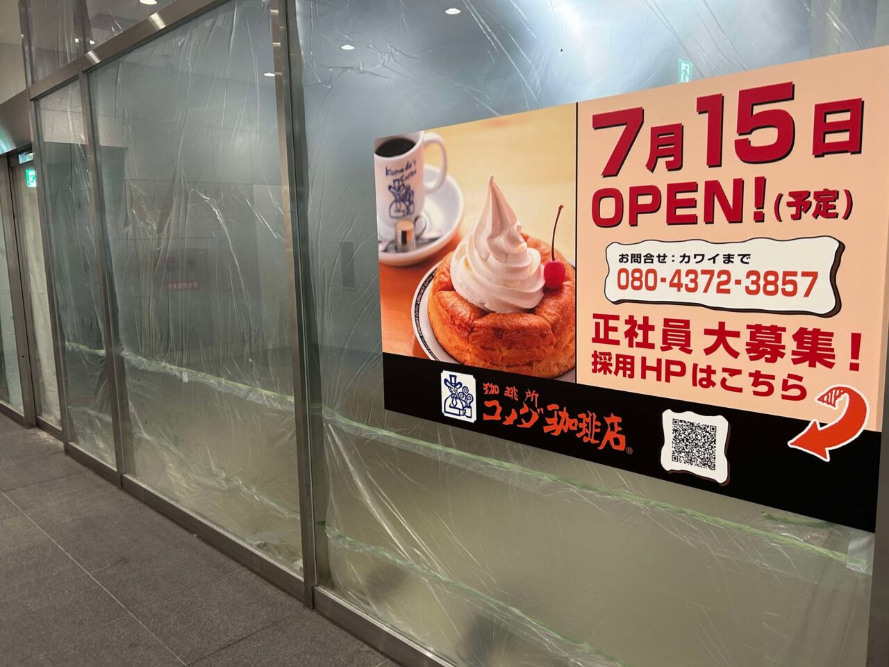 2025年7月15日(火)にオープン予定となっています。場所は南海本線堺駅ビルの1階になり、隣接する商業施設との境目になります。コメダ珈琲店と言えば「心にもっとくつろぎを」をモットーにお店作りをされていますね。