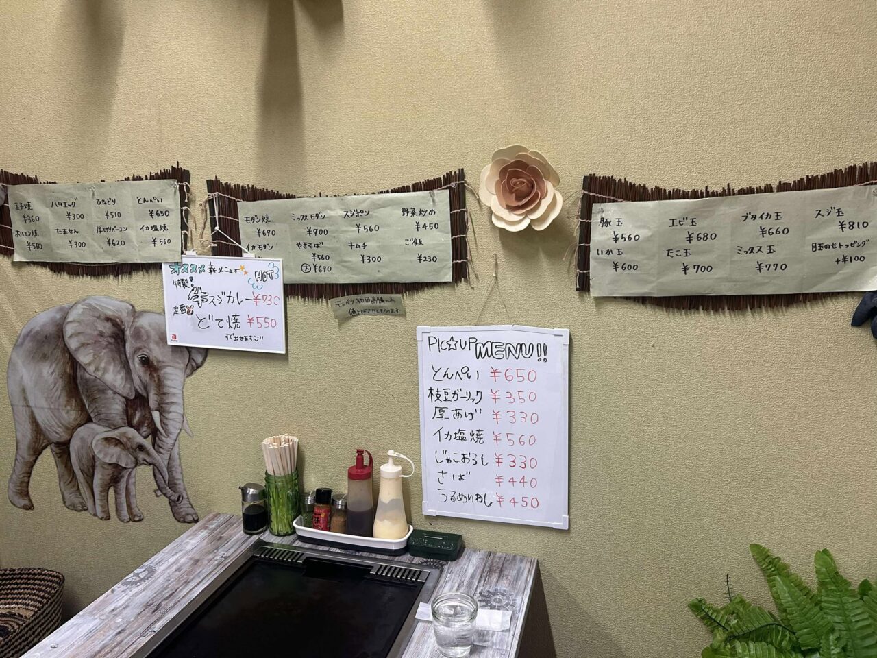 各テーブルには鉄板が設備されており、熱々の鉄板焼き料理を食べることが出来ます。お好み焼きからやきそば、モダン焼きなどなど関西ソウルフードもたくさん種類があります。