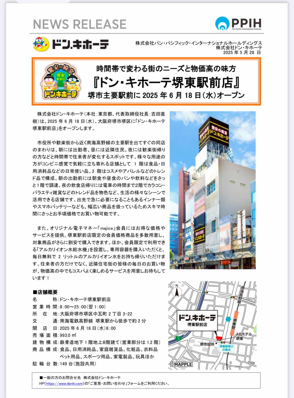 【堺市堺区】南海高野線堺東駅からすぐ!『ドン・キホーテ堺東駅前店』は2025年6月18日(水)にオープンします。