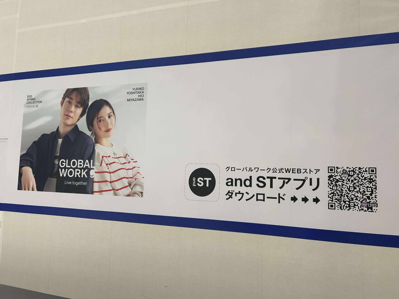 NEW OPEN前ですが、グローバルワーク公式WEBストア「and STアプリ」のQRコードが用意されており、事前にアイテムをチェックできるようにされていました。NEW OPENまでに下調べしておけば、店に行くのが楽しみになりますね。