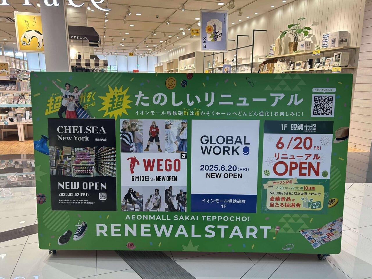 イオンモール堺鉄砲町にはGLOBAL WORKのNEW OPENの告知がいたる所でされていました。