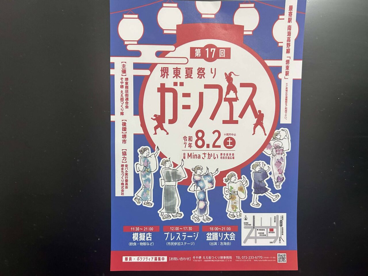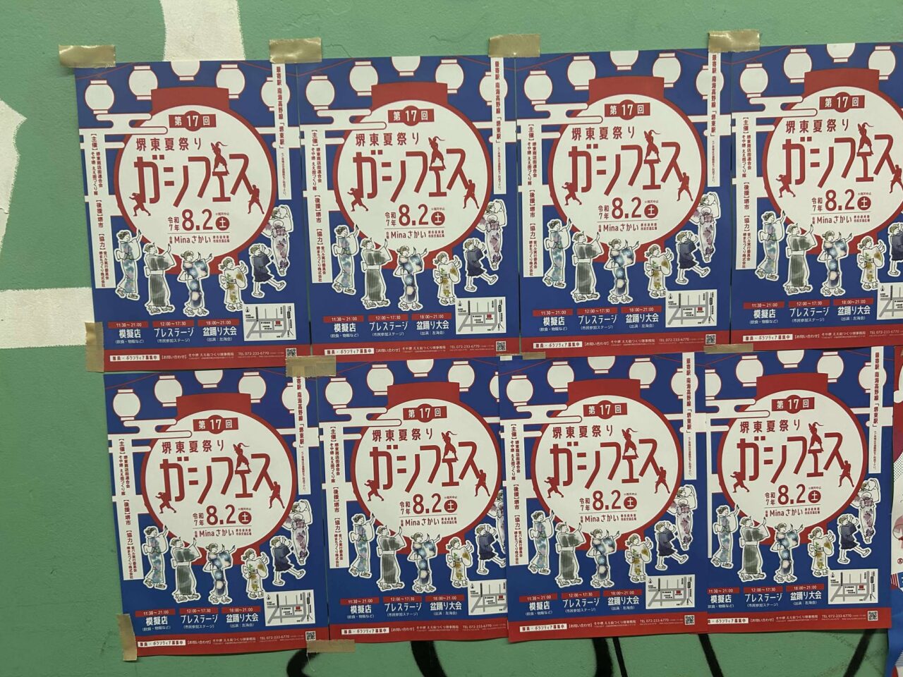堺東商店街のいたる所にチラシが貼られています。イベントへの期待が感じ取れますね。