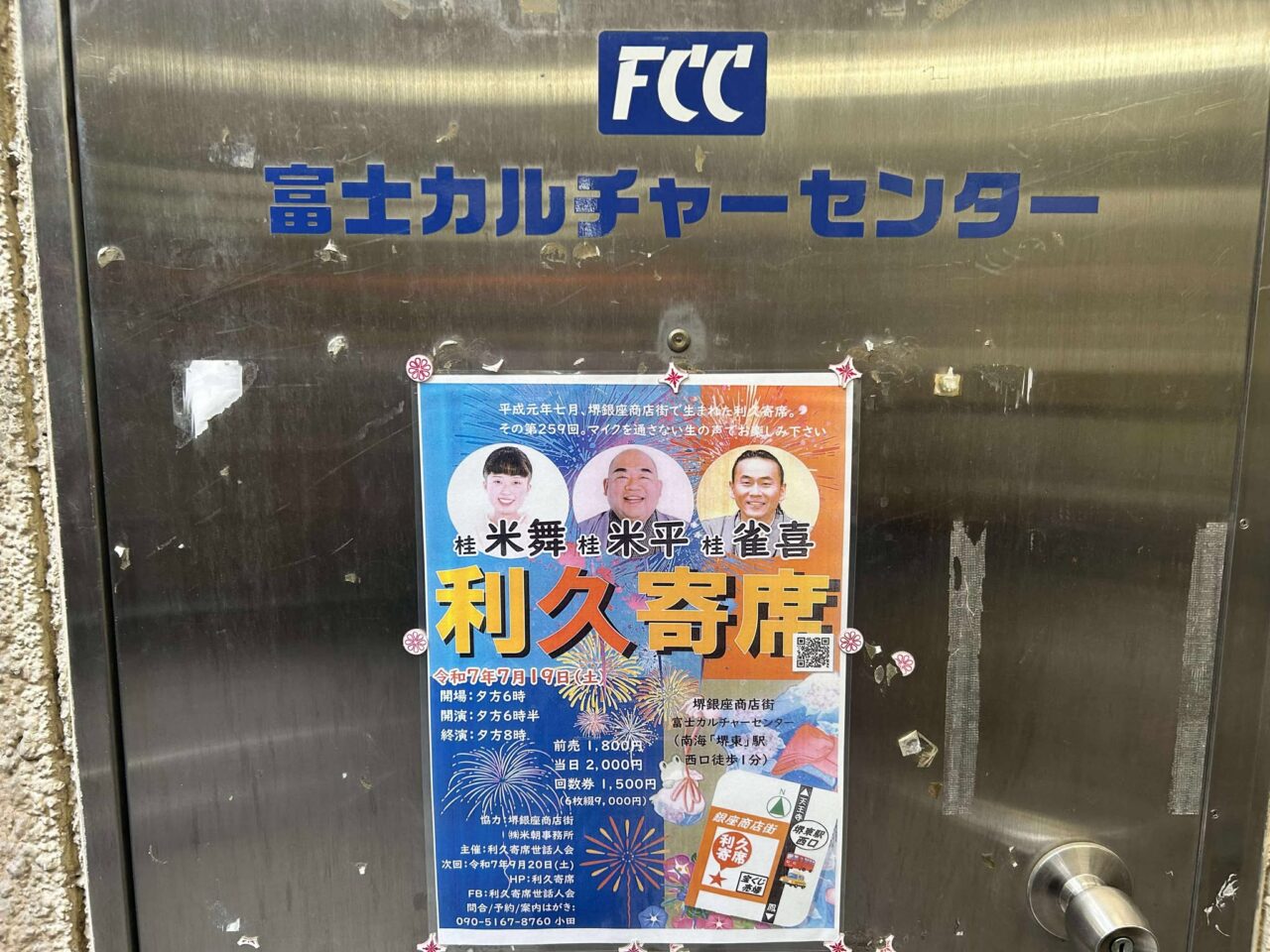 【堺市堺区】堺東駅西口から歩いてすぐの富士カルチャーセンターで2025年7月19日(土)『利久寄席』が開催されます。