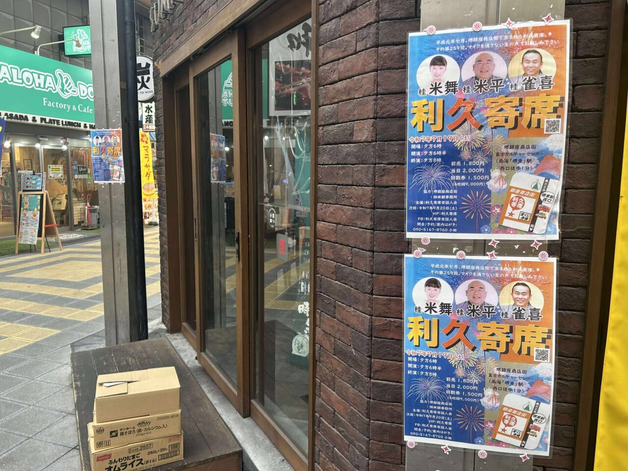 堺東商店街の至るところにチラシも貼られております。臨場感ある会場で、生の落語を楽しめますので、気になった方は、足を運んでみてくださいね。