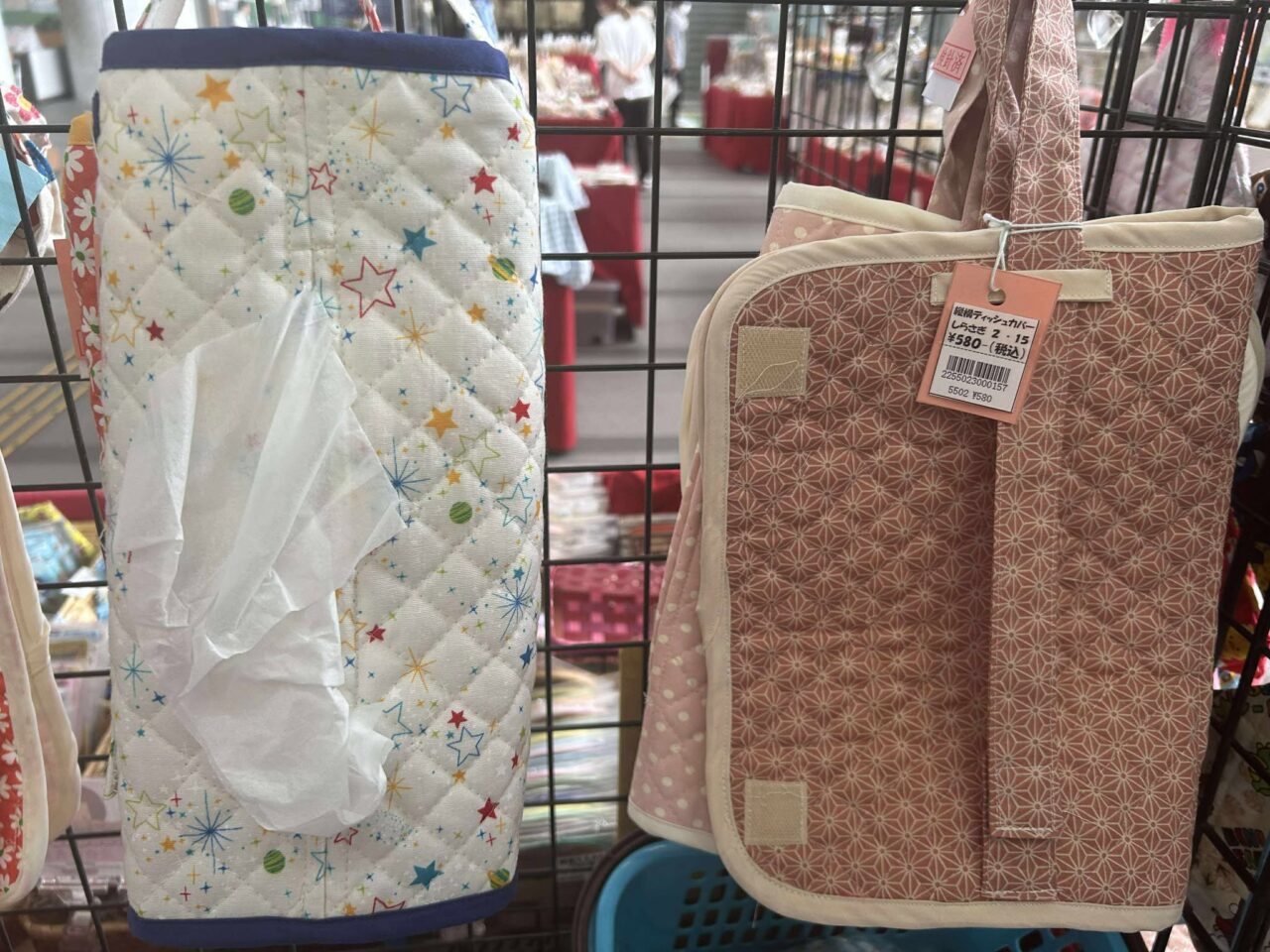 ティッシュカバーひとつにしても、縦にも横にもひっかけられるように工夫されていたり、色合い、柄も含めてアイデアを出し合い、作業分担して完成させます。その製造過程を作業訓練として日中活動にしている障がい福祉事業所もあります。