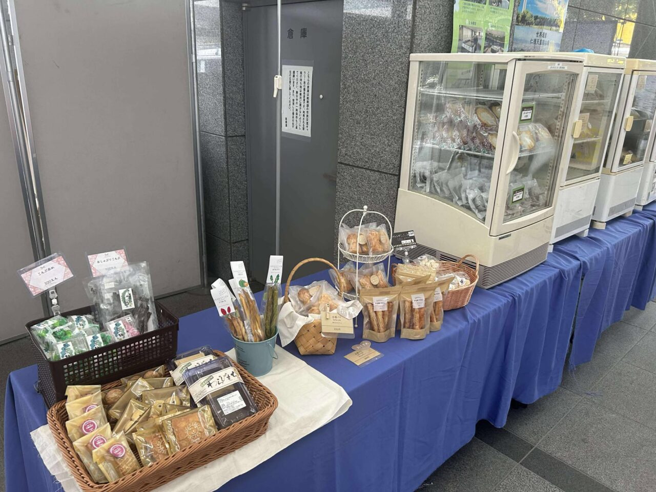 取材日は7月17日(木)の正午前でしたが、市役所の職員さんや市役所に用事があって来られた市民が立ち寄って、障がい者施設で丁寧に作られた商品のひとうひとつを手に取って見ていました。