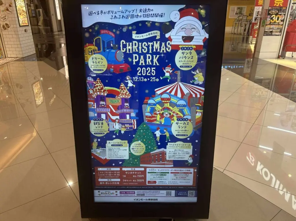 2025年12月13日(土)から同年12月25日(木)まで『Christmas Park』が開催されているイオンモール堺鉄砲町はこちら↓