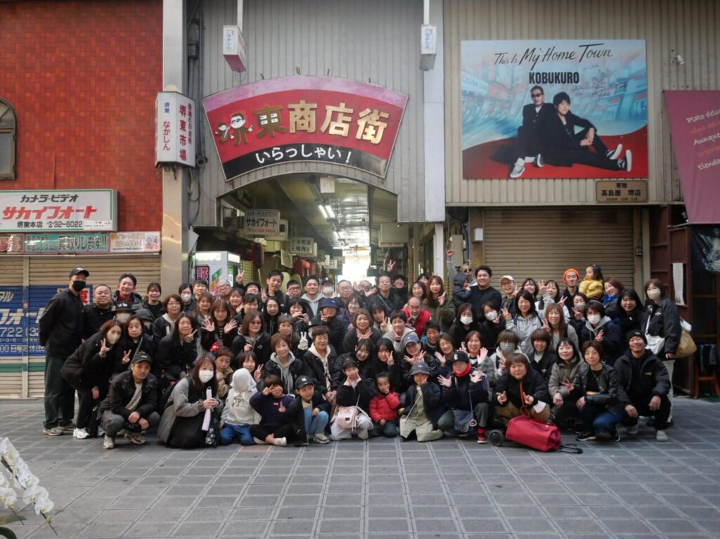 『堺東駅前商店街振興組合』主催の清掃活動に参加してくださった皆さんで記念撮影。
